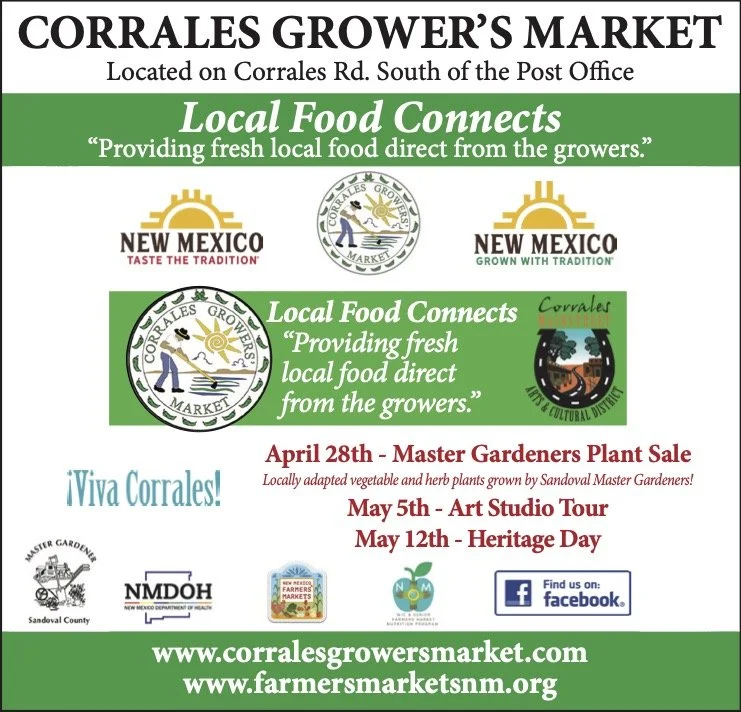 The Corrales Growers’ Market operates to support the traditional agricultural economics of the Village of Corrales and to provide community access to sustainable sources of locally grown food. We support the preservation of farmland, the sustainability of family farms and local agricultural production by providing agricultural producers a marketing facility for the sale of their products directly to consumers.
